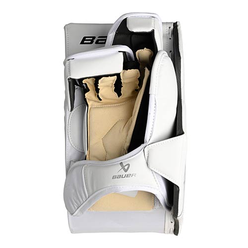 Le Bloqueure de gardien de but de hockey sur glace Bauer GSX II S23 Intermédiaire en blanc est le choix optimal pour les joueurs qui apprécient un ajustement, un confort et un contrôle de premiere classe.