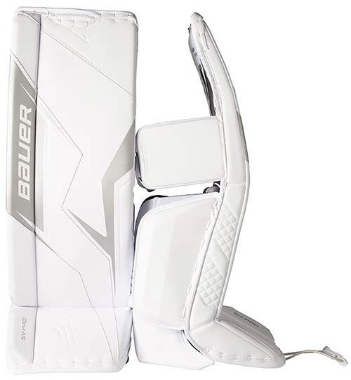 Une protection exceptionnelle et une grande mobilité caractérisent la jambiere de gardien Bauer SV-Pro Junior Blanche. Le berceau de genou FLYLITE, la plaque et la sangle de mollet assurent stabilité et maintien, tandis que le noyau VAPOR avec cuisse renforcée en CURV garantit une sécurité fiable a chaque arret.