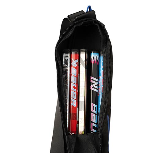 Il peut contenir jusqu'a cinq Mystery bâtons de hockey, y compris les modeles de gardien, et dispose d'une bandouliere réglable ainsi que d'une poignée de transport. Sa poche zippée robuste assure une protection optimale et un rangement soigné.