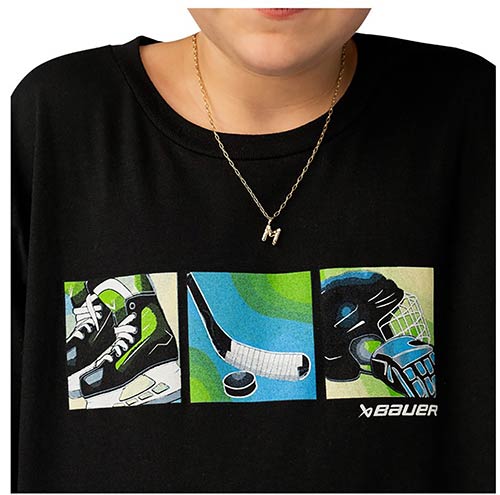 Le Bauer Graphic Tee 1 T-Shirt Junior noir apporte un style inspiré du hockey au quotidien des jeunes joueurs. Avec son graphisme inspiré du hockey placé au centre de la poitrine, il offre un look sportif et associe un design décontracté a un confort agréable.